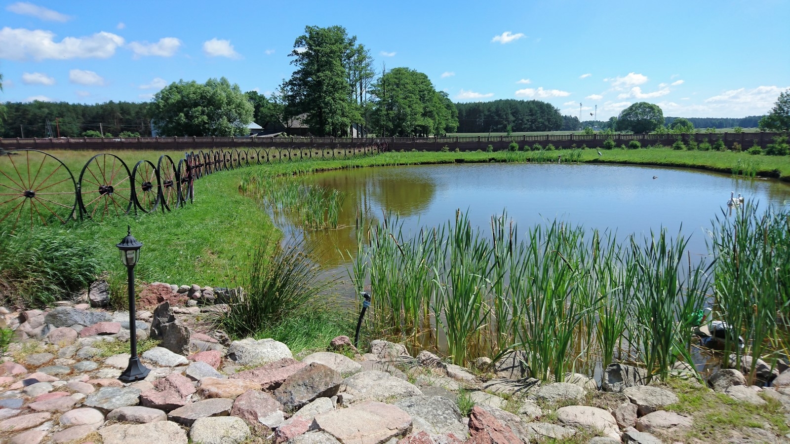 Obejście bardzo zadbane i uporządkowane. Duży staw, gdzie można łowić ryby, fontanna z małą kaskadą, rabaty z kwiatami, teren do zabaw dla dzieci z piaskownicą, kolekcja starych maszyn rolniczych. Amatorzy wycieczek mogą skorzystać także z rowerów.