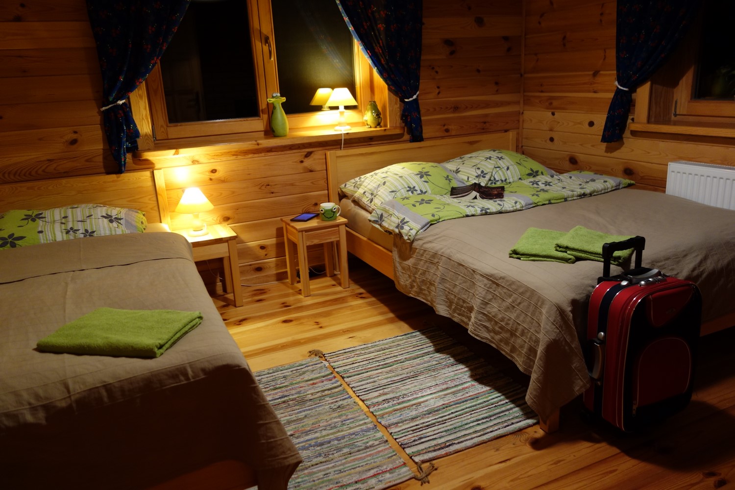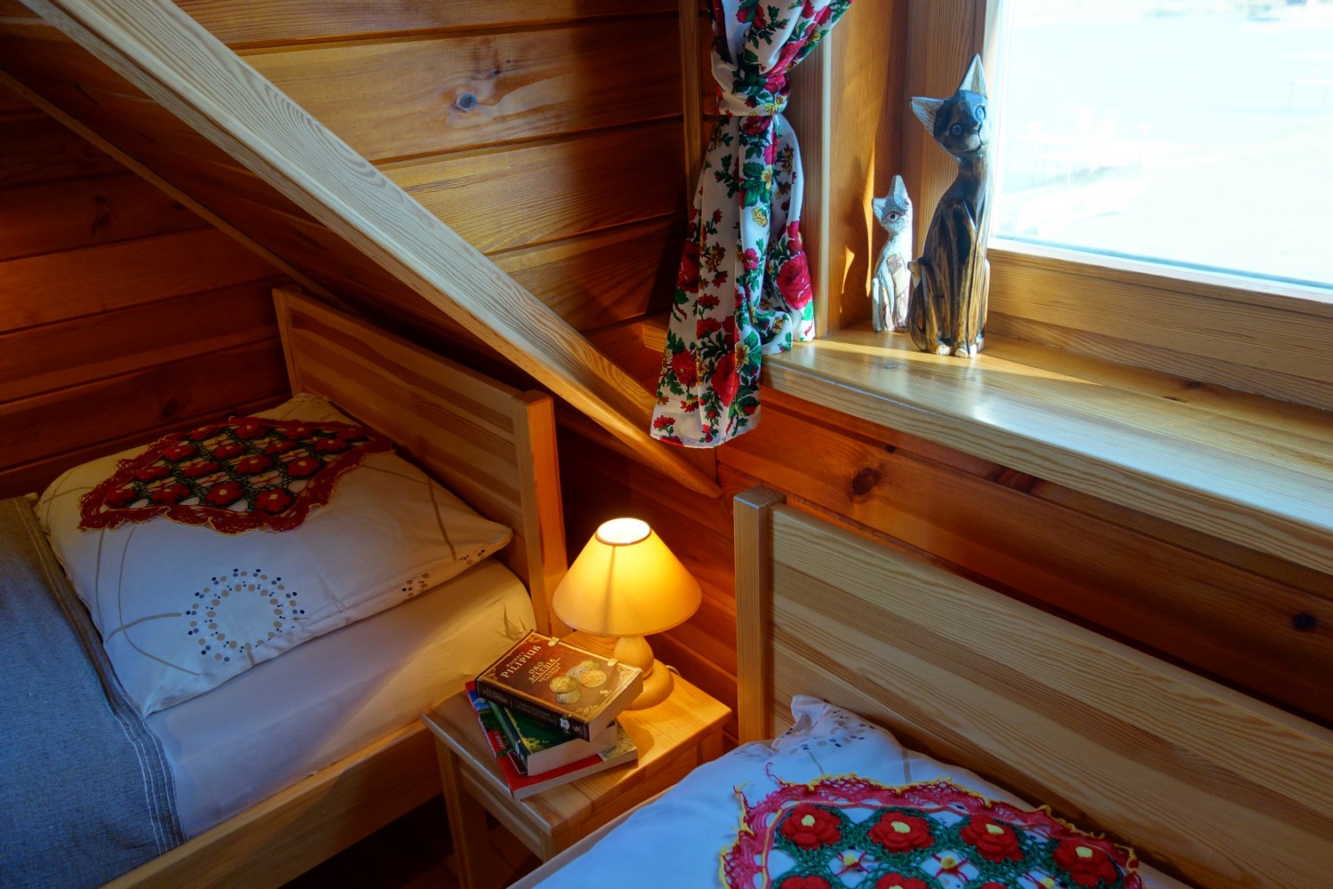 Całoroczna oferta obejmuje pobyt z noclegiem oraz możliwością skorzystania z wyżywienia. W klimatycznym domu z bali przez cały rok na gości czekają przytulne, komfortowe pokoje. W każdym z nich znajduje się łazienka z prysznicem i dostępne jest wi-fi. Specjalny pokój rodzinny to 2-pokojowe studio dla 5 osób wyposażone w łazienkę przystosowaną dla osób niepełnosprawnych oraz taras z widokiem na jezioro.